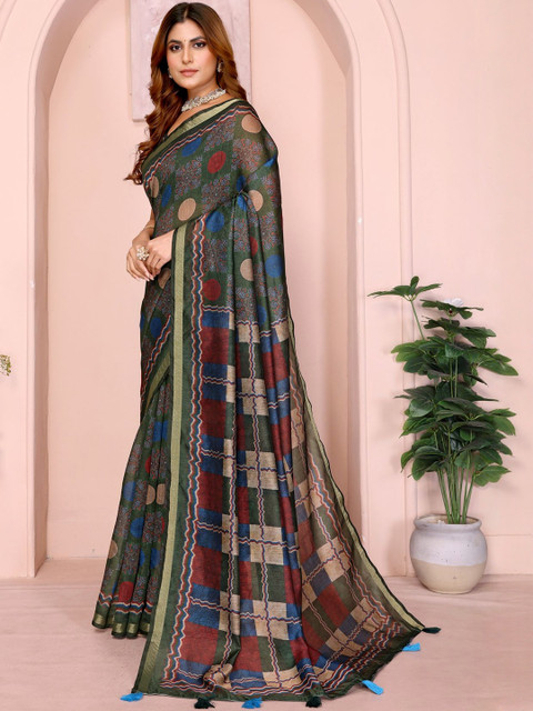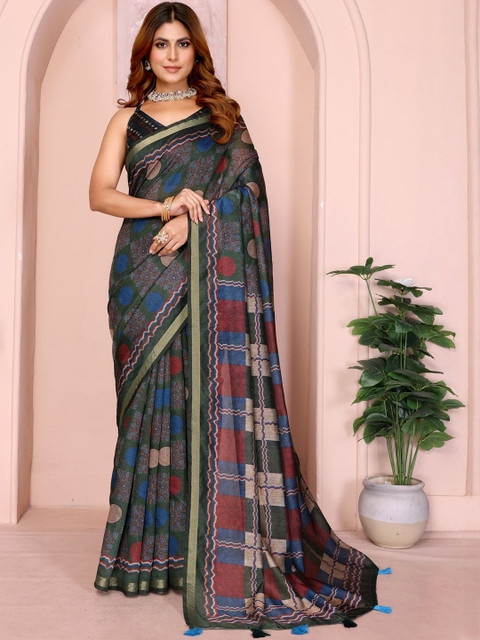 Mameraa Ethnic Motifs Printed Saree With Unstitched Blouse