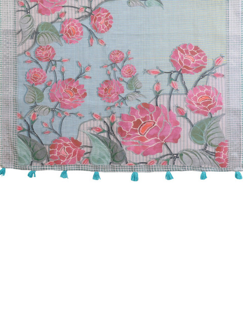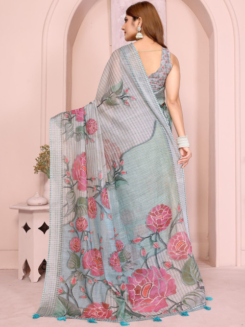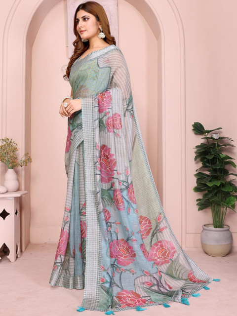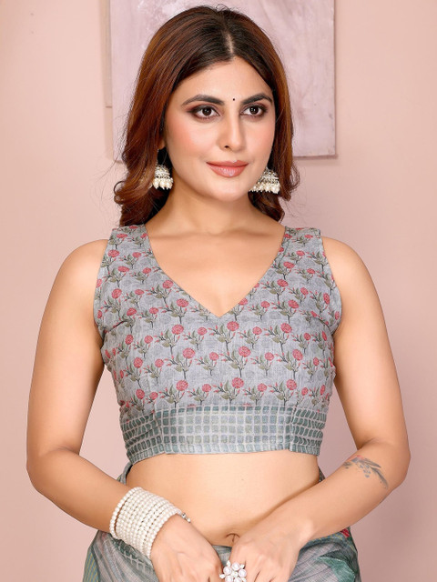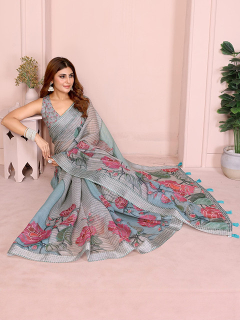 Mameraa Floral Printed Saree With Blouse Piece