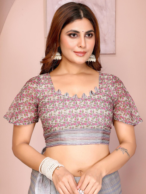 The blouse worn by the model might be for modelling purpose only. Check the image of the blouse piece to understand how the actual blouse piece looks like.