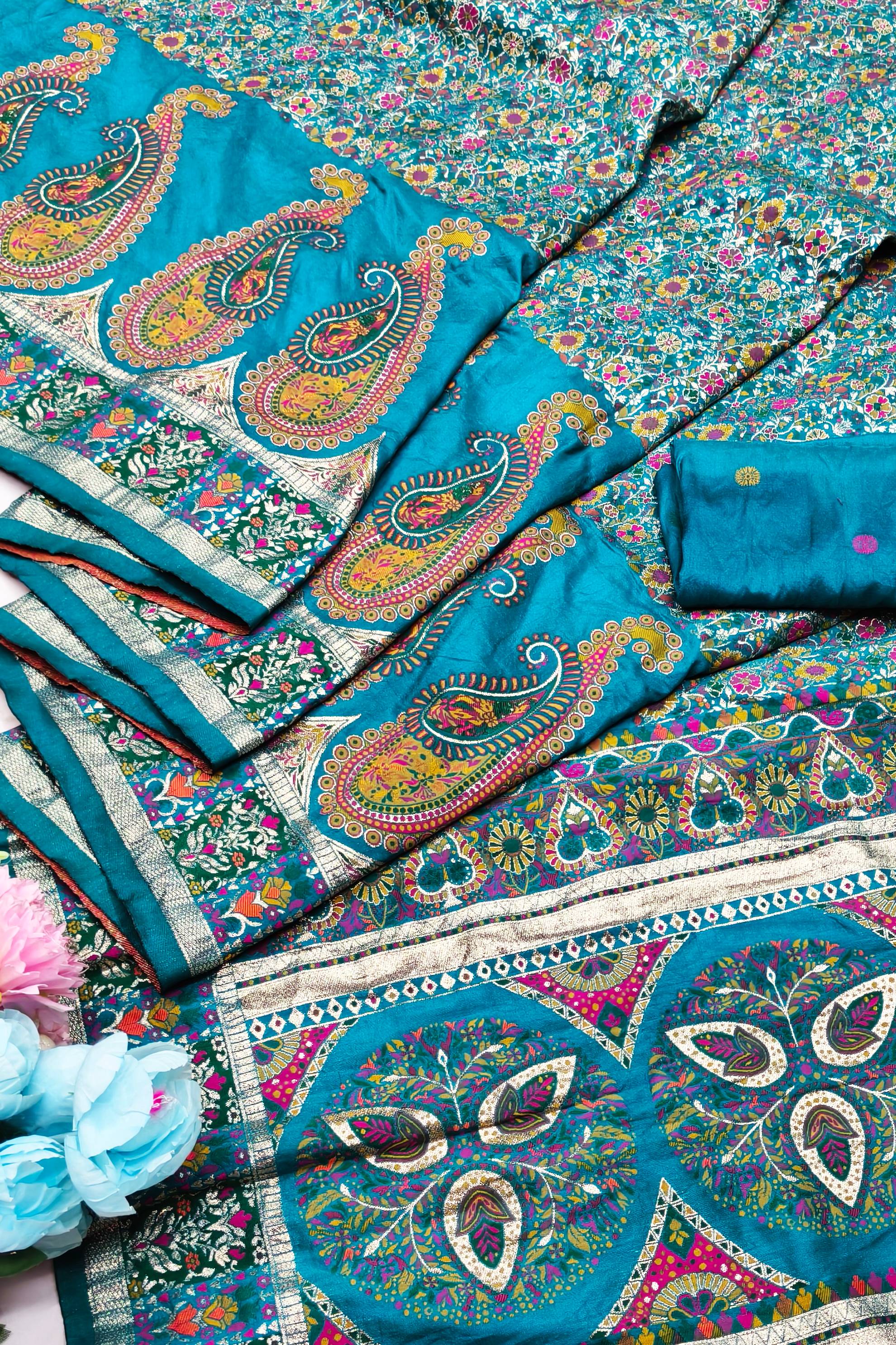 Upgrade your ethnic elegance with our exquisite Nylon Dola Pashmina Silk Saree. Crafted with precision and care, this saree features a delicate blend of silk and nylon materials, ensuring both luxurious softness and durability. Whether attending a special occasion or simply wanting to add a touch of sophistication to your everyday wardrobe, this saree is a versatile choice that will never go out of style.