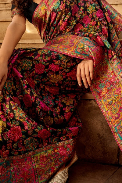 SAREE SPECIFICATIONS:Fabric: Kashmiri Modal SilkColour: Black Work Type: Zari WeavingBLOUSE SPECIFICATION:Fabric: Kashmiri Modal SilkColour: Black