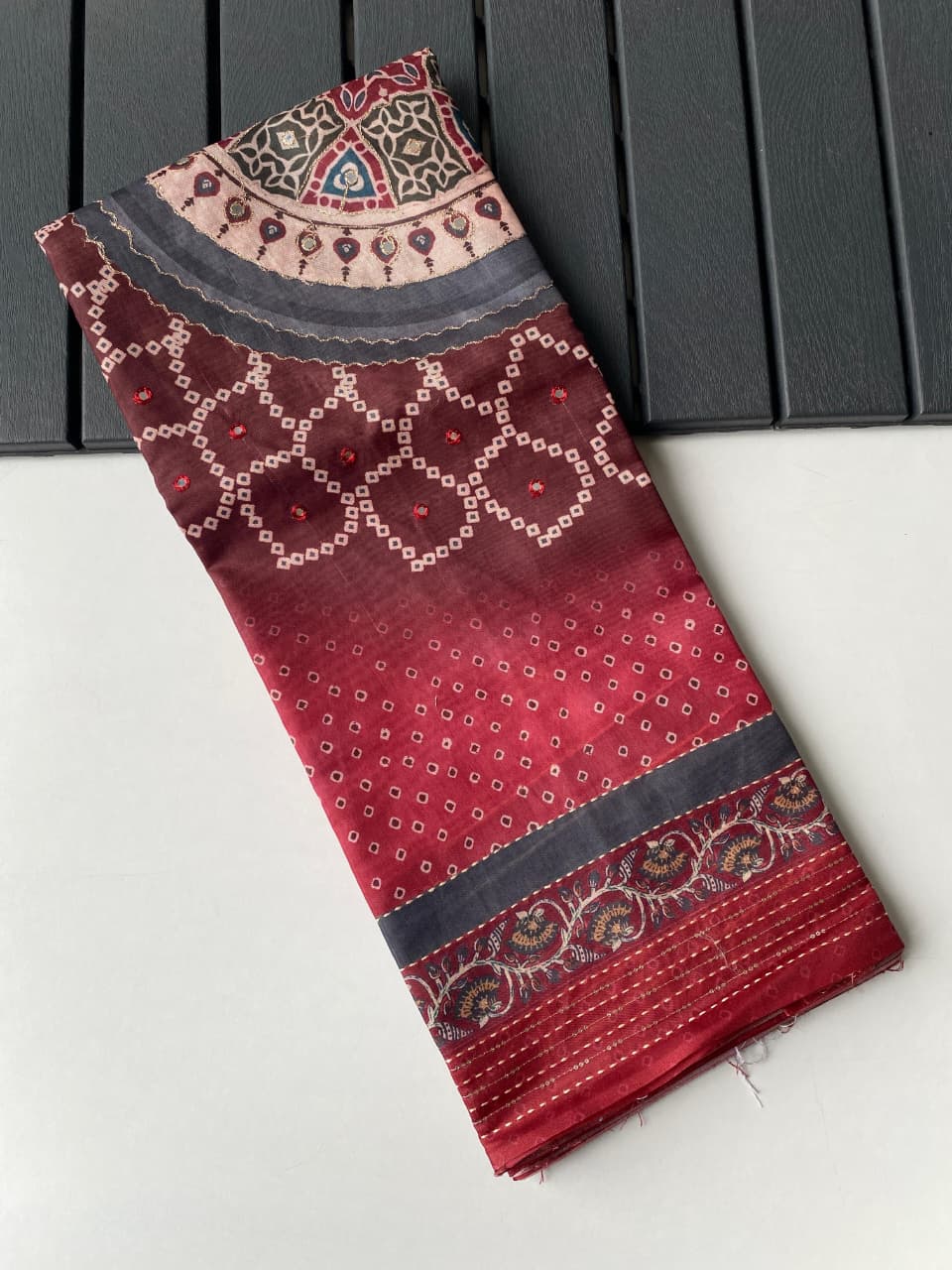 Elevate your ethnic wardrobe with our stunning Soft Silk Bandhani Printed Saree! Crafted with care, this saree features intricate bandhani prints on soft silk fabric, giving you a timeless and elegant look. Perfect for any special occasion or festive celebration, this saree is sure to turn heads wherever you go.
