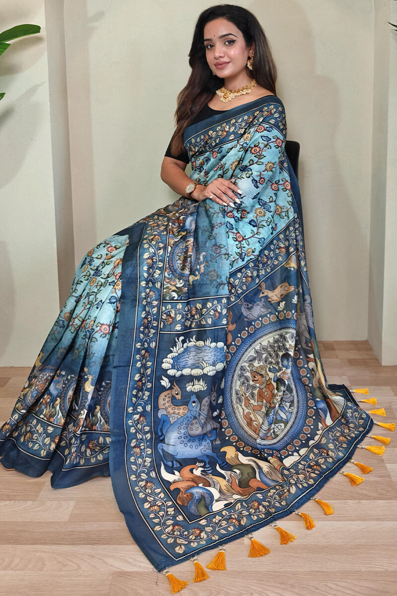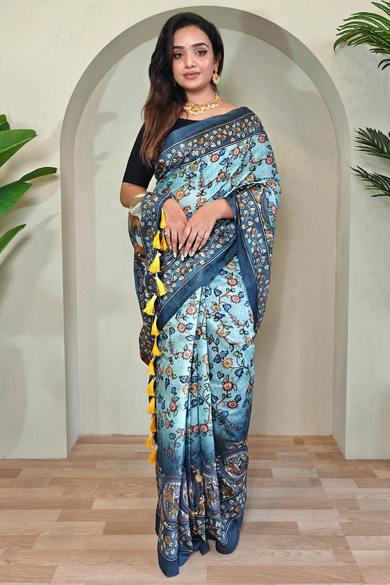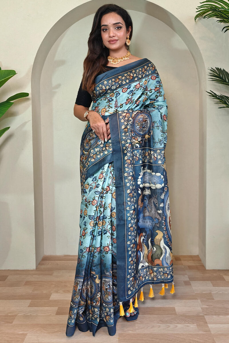 Elevate your traditional wardrobe with our exquisite Kalamkari Printed Saree. The beautiful patterns and vibrant colors will add a touch of elegance to any outfit, whether you're attending a wedding or a festive event.