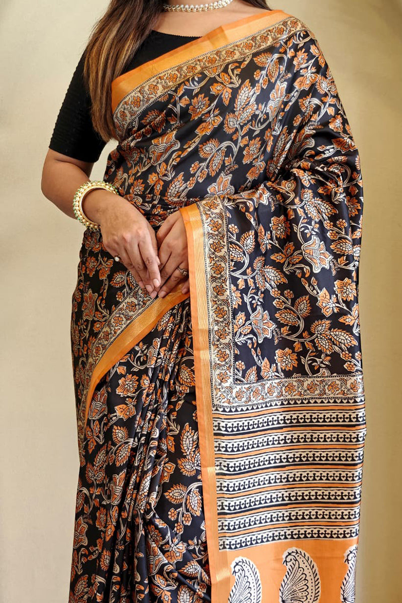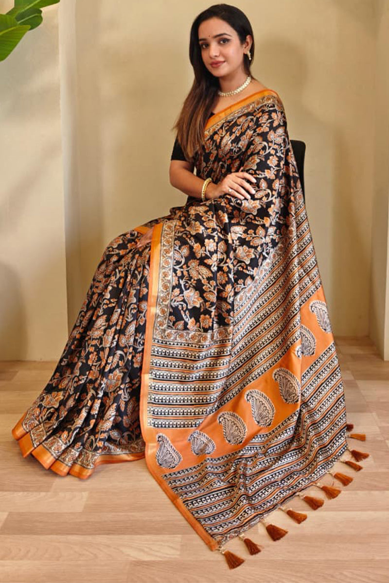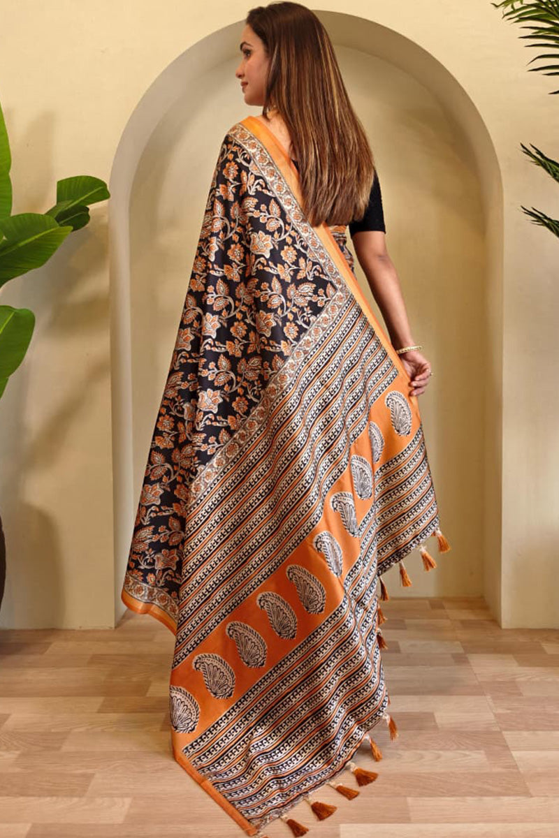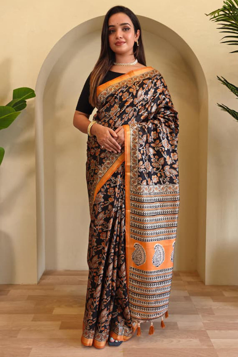 Elevate your ethnic wardrobe with our exquisite Printed Viscose Dola Silk Saree. Crafted with a luxurious blend of viscose and silk, this saree features intricate zari Border that adds a touch of elegance to your look. Perfect for any special occasion, this lightweight saree is comfortable to wear and drapes beautifully, making you the center of attention wherever you go.