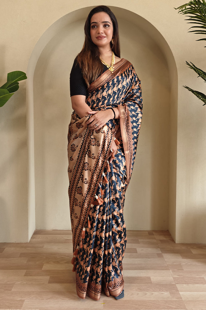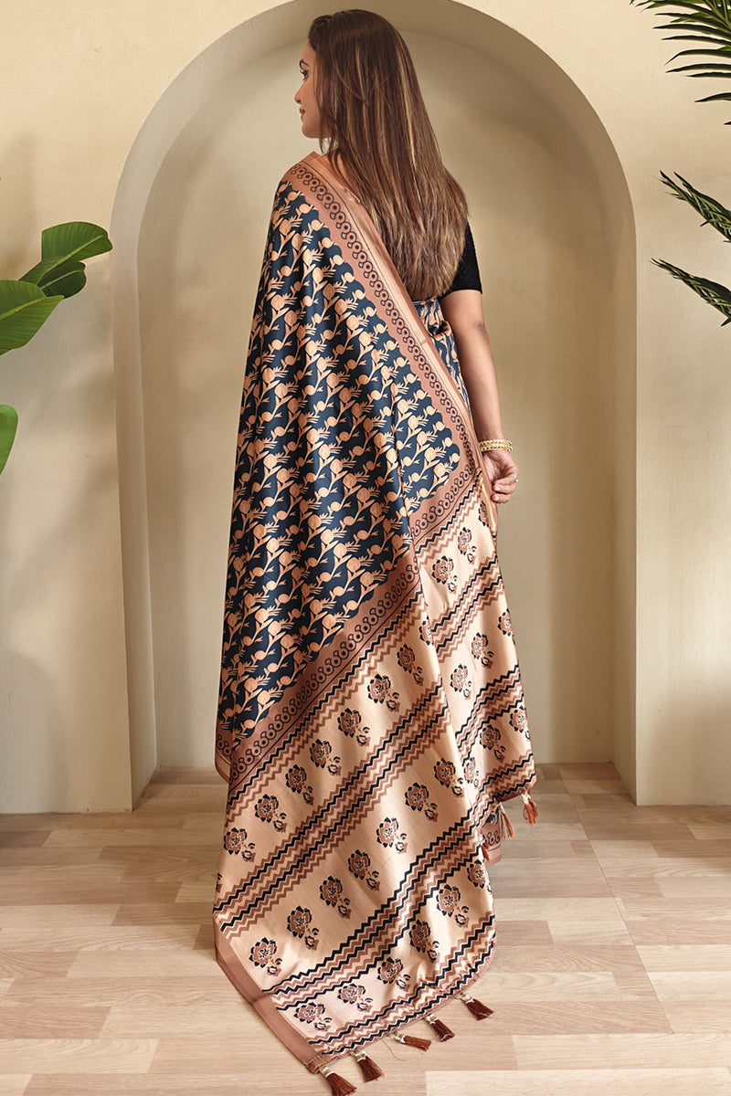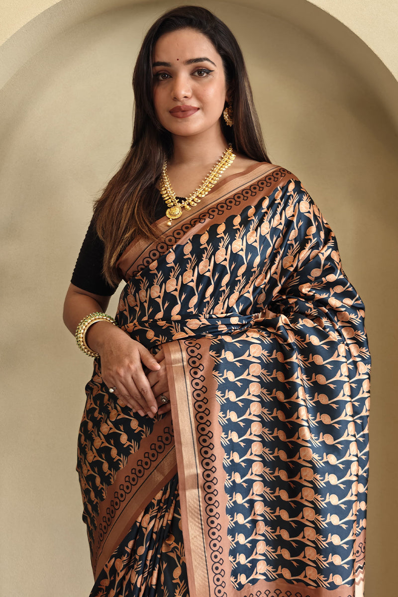 Crafted with care and attention to detail, this saree features a mesmerizing digital print that is sure to turn heads. The soft and luxurious Dola silk fabric gives it a graceful flow, making you feel effortlessly chic and stylish. Perfect for weddings, parties, or any festive event.