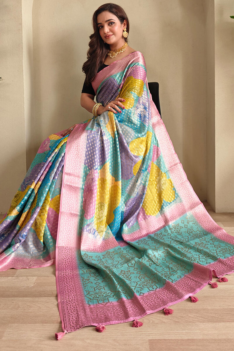 Elevate your style with our exquisite Multicolor Digital Printed Georgette Saree. Crafted from luxurious georgette fabric, this saree features a stunning array of colors and intricate digital prints that will surely turn heads at any event. Embrace the elegance and sophistication of this saree and make a statement wherever you go.