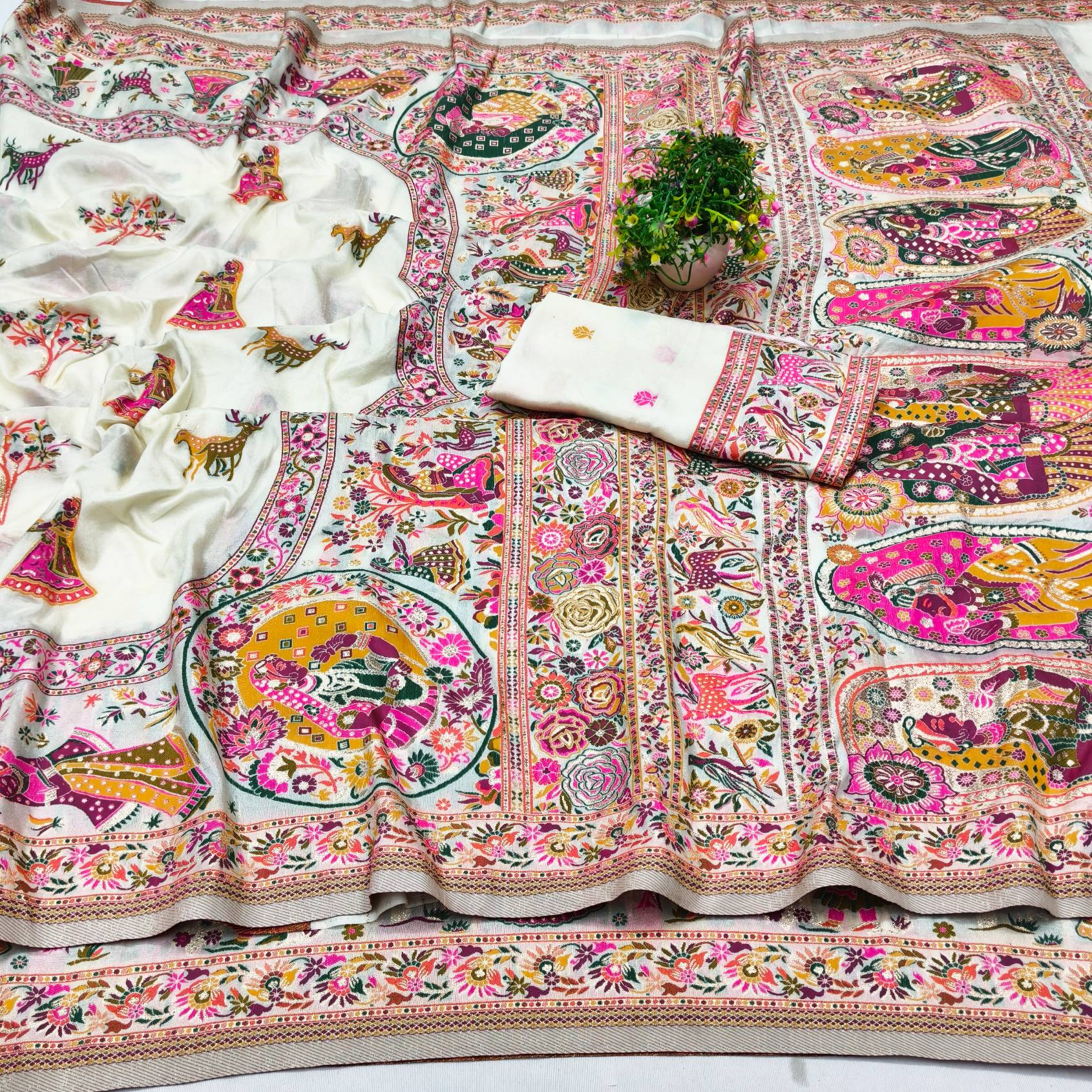 Gorgeous Beige Nylon Dola Pashmina Saree With Prodigal Blouse Piece – Festive Saree with Blouse Piece (5.5 Meters)