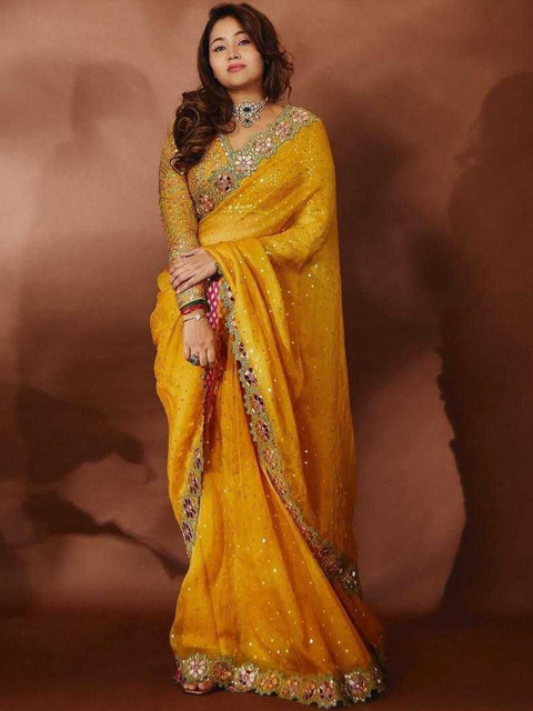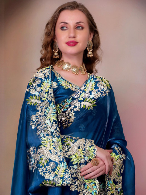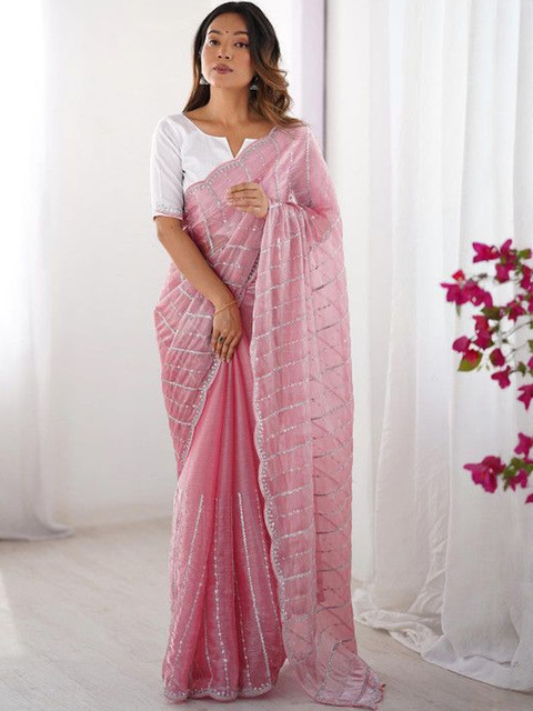 Mameraa Embellished Sequinned Saree With Blouse Piece