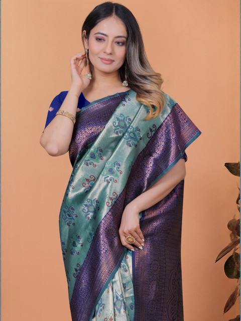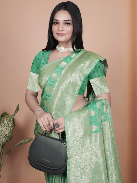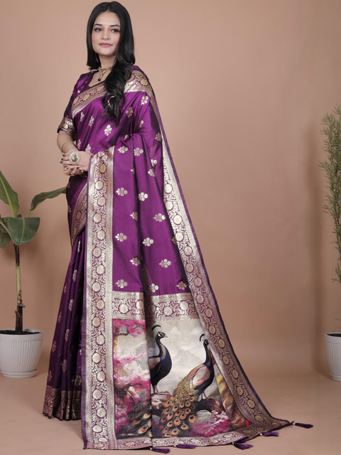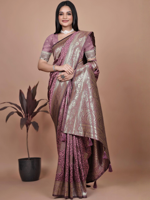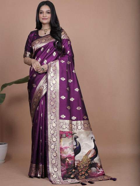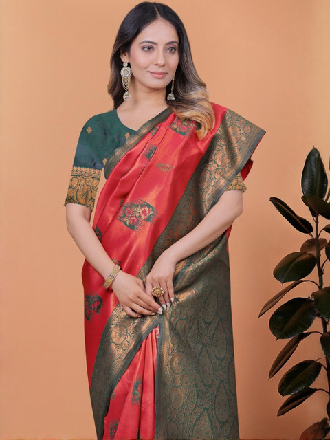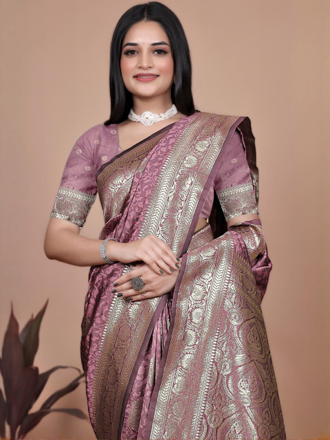 Mameraa Ethnic Motifs Woven Design Zari Banarasi Saree