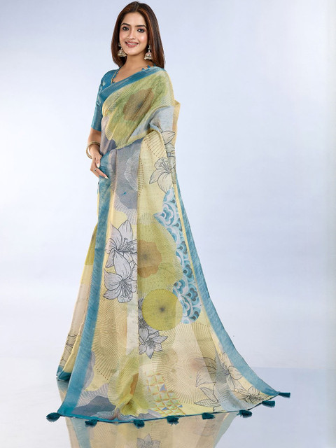 The saree comes with an unstitched blouse piece