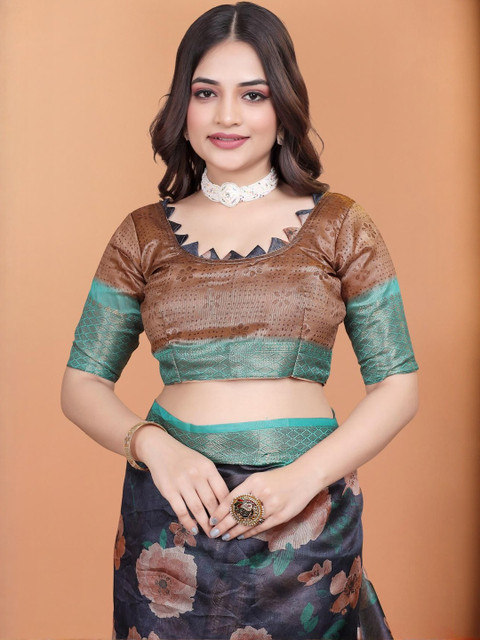 The blouse worn by the model might be for modelling purpose only. Check the image of the blouse piece to understand how the actual blouse piece looks like.