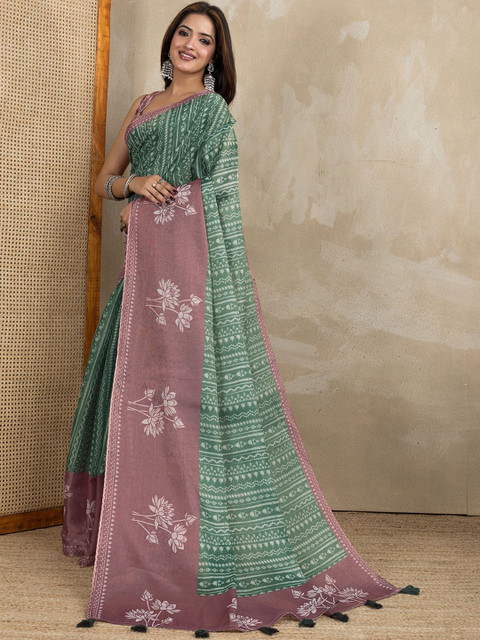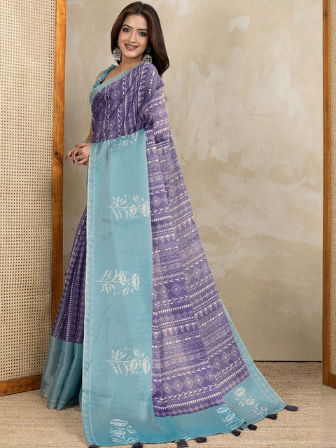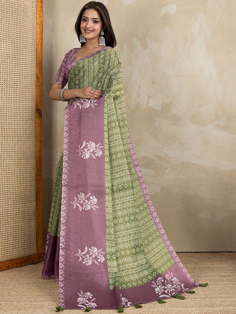 Mameraa Abstract Printed Saree With Unstitched Blouse Piece