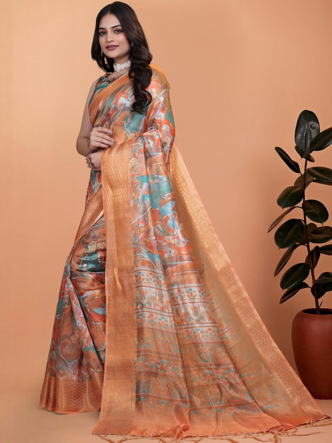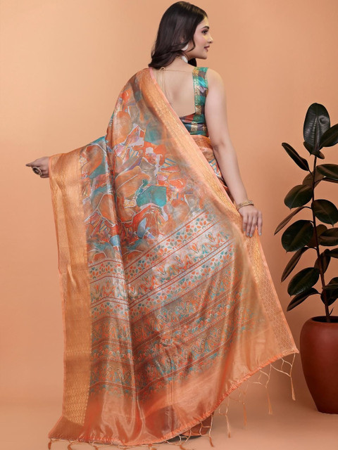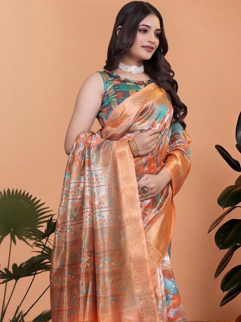 Mameraa Abstract Printed Zari Saree With Blouse Piece