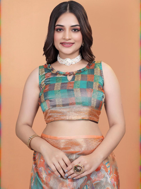 The blouse worn by the model might be for modelling purpose only. Check the image of the blouse piece to understand how the actual blouse piece looks like.