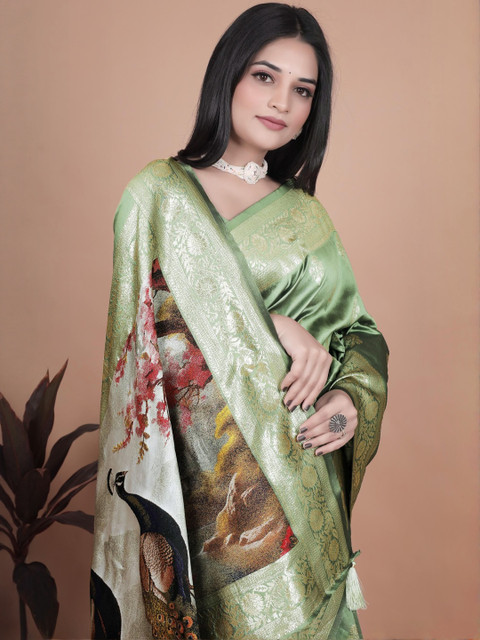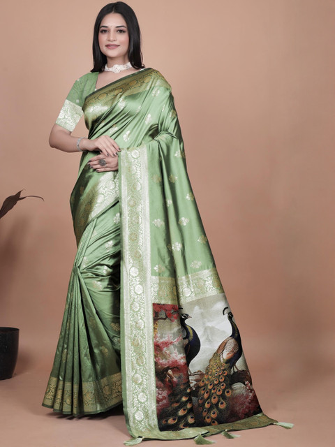 Mameraa Ethnic Motifs Woven Design Zari Banarasi Saree