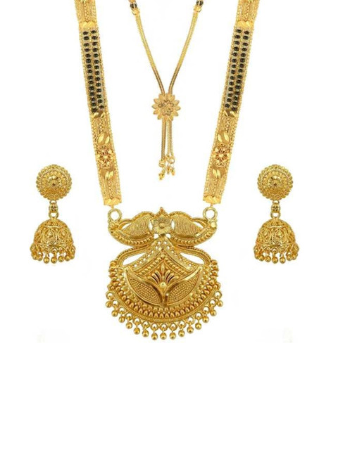 Mameraa Women Gold-Plated Stone-Studded Mangalsutra With Earrings