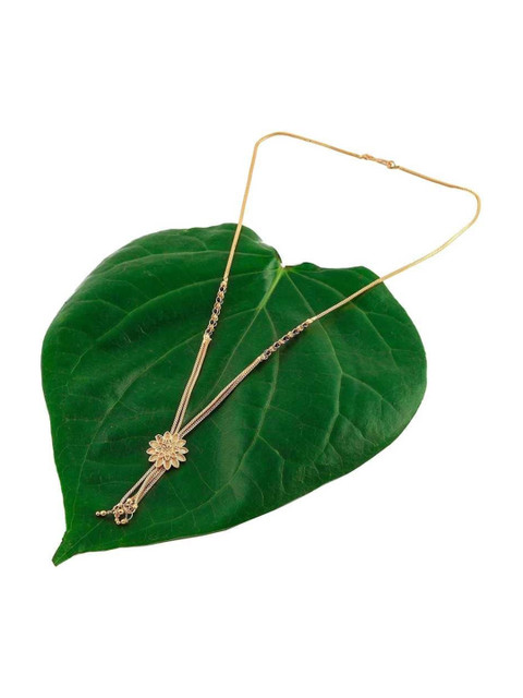 Mameraa Gold-Plated CZ Studded & Beaded Floral Mangalsutra
