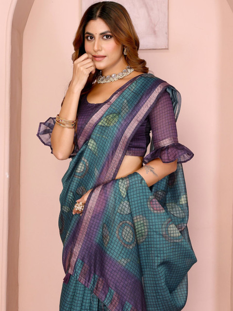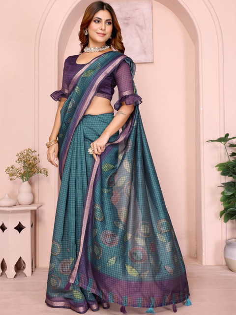 - Checked saree with solid border