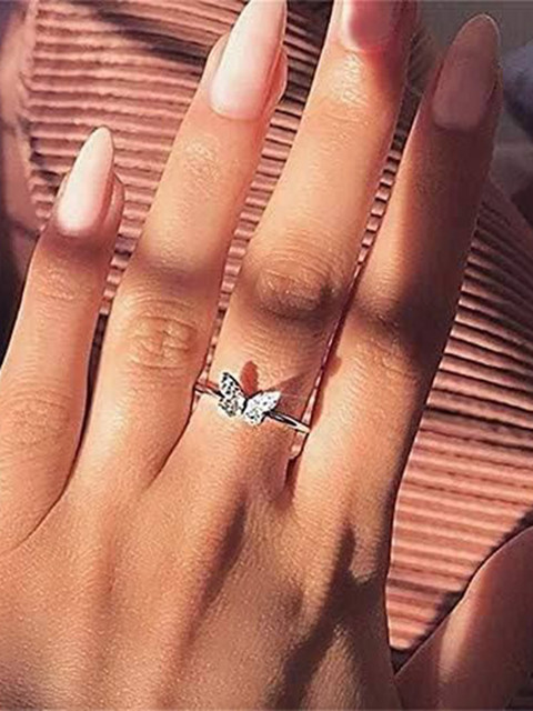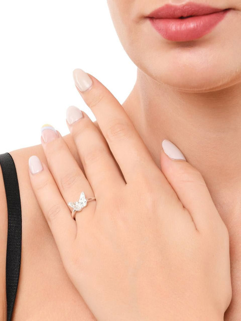 Mameraa Cubic Zirconia Studded Butterfly Solitaire Finger Ring