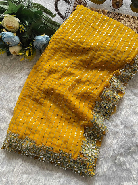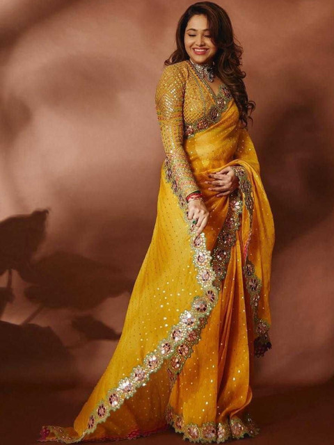 Mameraa Embellished Sequinned Saree With Blouse Piece