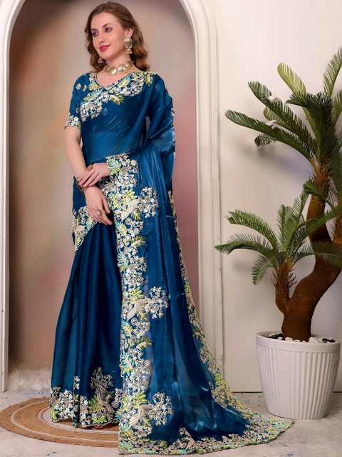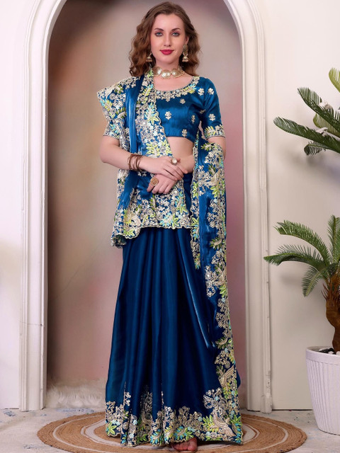 The blouse worn by the model might be for modelling purpose only. Check the image of the blouse piece to understand how the actual blouse piece looks like.