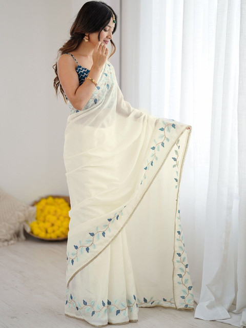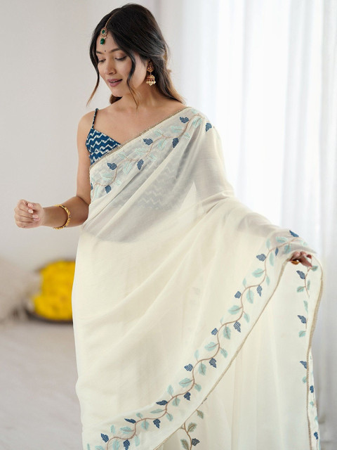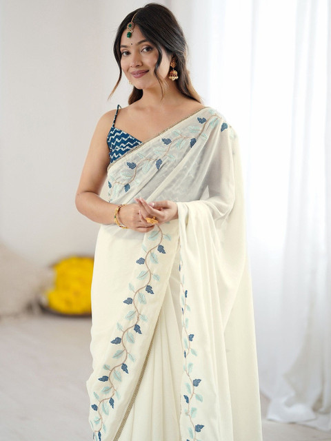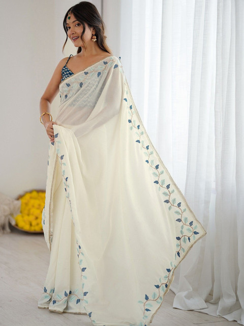Mameraa Ethnic Motifs Embroidered Saree With Unstitched Blouse Piece