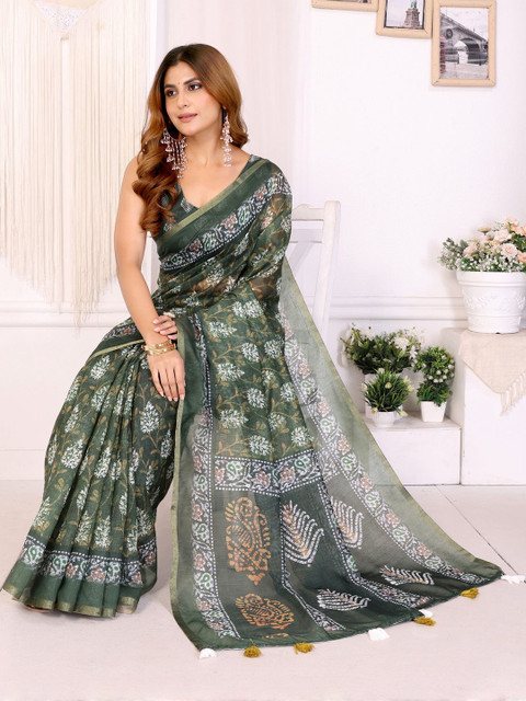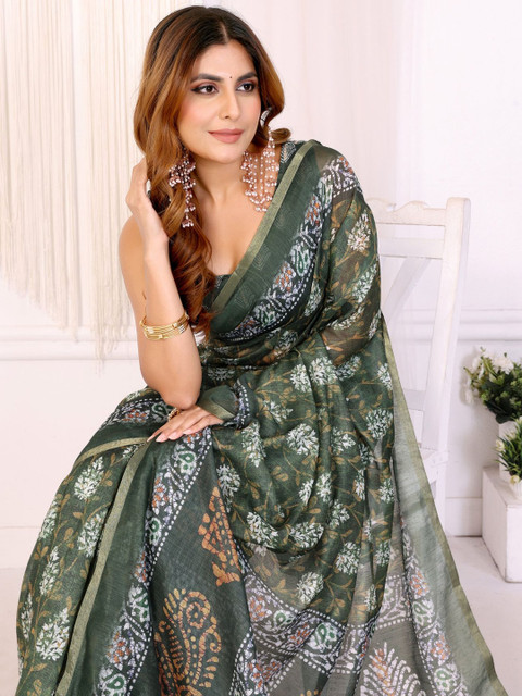 Mameraa Ethnic Motifs Printed Saree With Unstitched Blouse