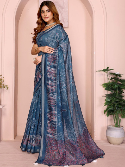 Mameraa Ethnic Motifs Printed Saree With Unstitched Blouse