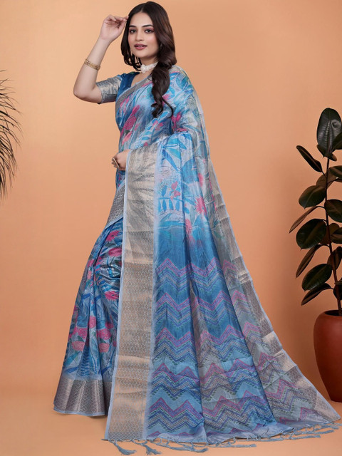 The saree comes with an unstitched blouse piece