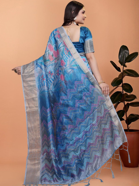- Ethnic Motifs printed saree with woven design border border