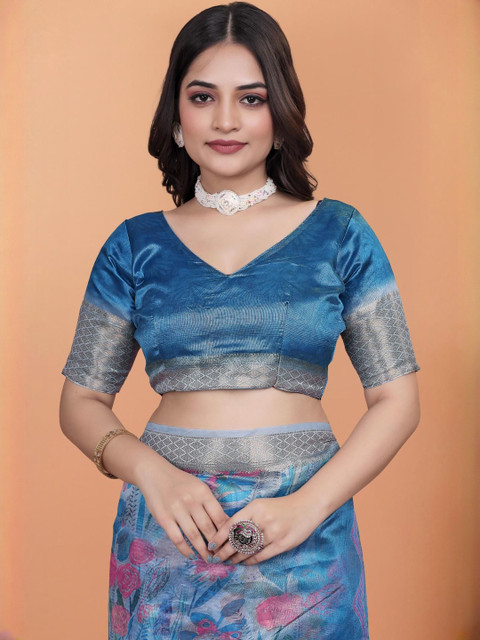 The blouse worn by the model might be for modelling purpose only. Check the image of the blouse piece to understand how the actual blouse piece looks like.