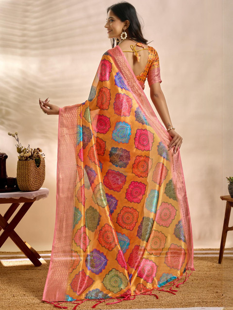 Mameraa Ethnic Motifs Woven Design Zari Banarasi Saree