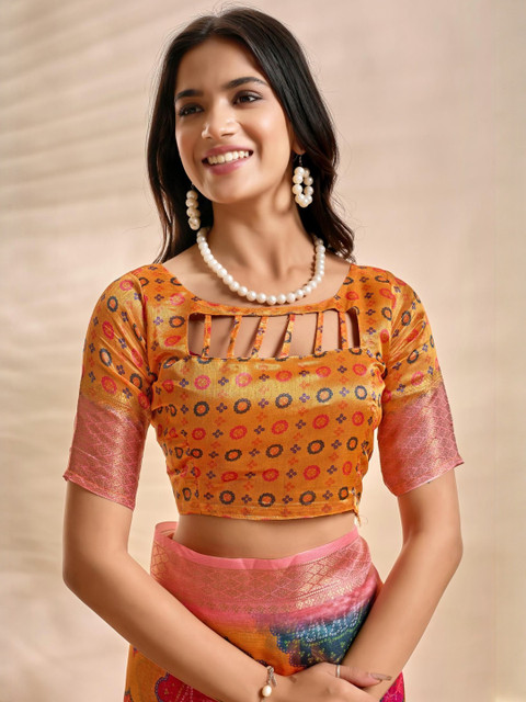 The blouse worn by the model might be for modelling purpose only. Check the image of the blouse piece to understand how the actual blouse piece looks like.
