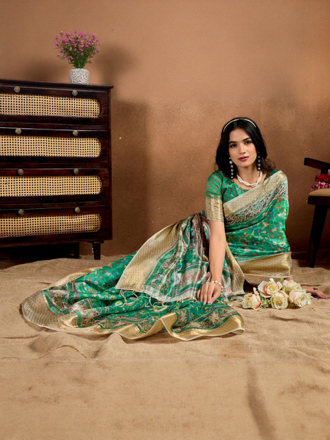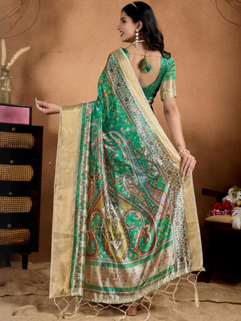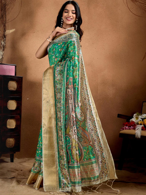 Mameraa Ethnic Motifs Printed Zari Saree With Woven Design Border