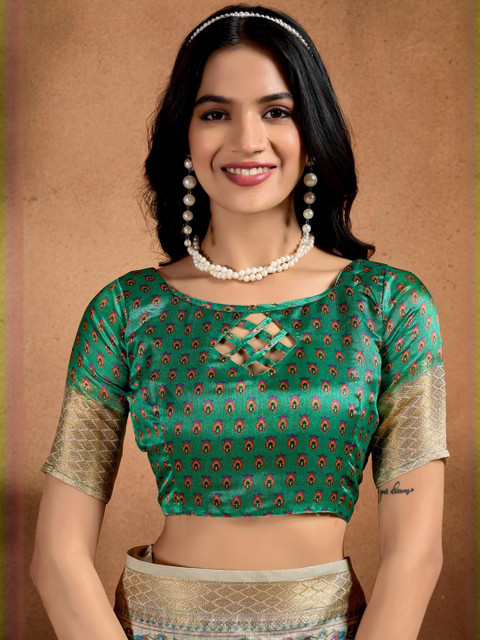 The blouse worn by the model might be for modelling purpose only. Check the image of the blouse piece to understand how the actual blouse piece looks like.