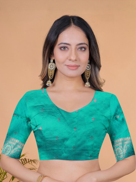 The blouse worn by the model might be for modelling purpose only. Check the image of the blouse piece to understand how the actual blouse piece looks like.