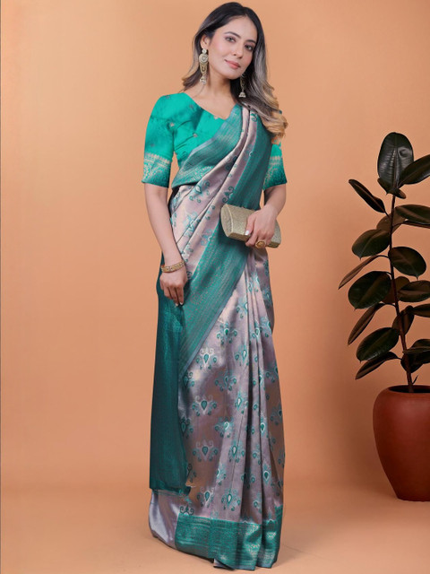Mameraa Ethnic Motifs Woven Design Zari Banarasi Saree