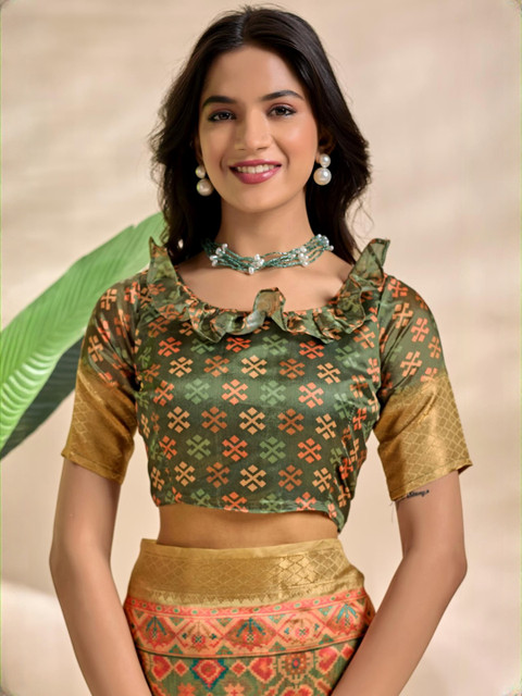 The blouse worn by the model might be for modelling purpose only. Check the image of the blouse piece to understand how the actual blouse piece looks like.
