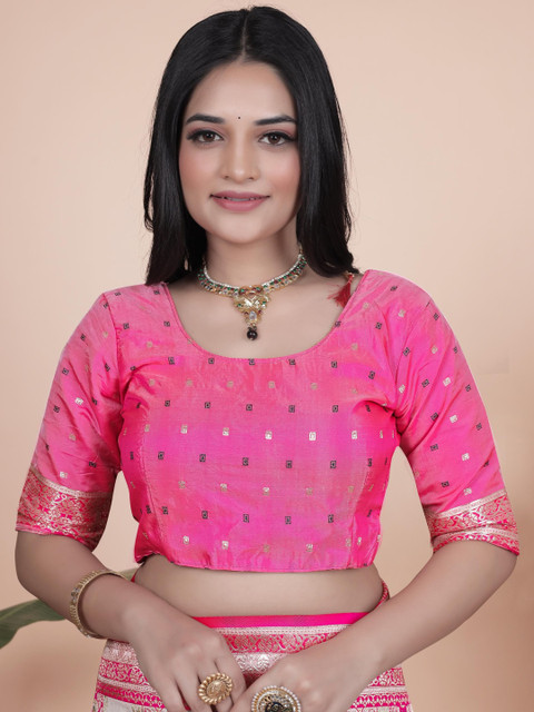The blouse worn by the model might be for modelling purpose only. Check the image of the blouse piece to understand how the actual blouse piece looks like.