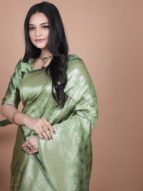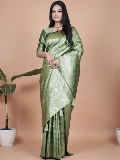 Mameraa Ethnic Motifs Woven Design Zari Saree With Blouse Piece