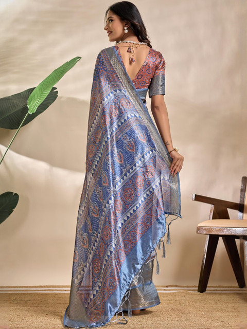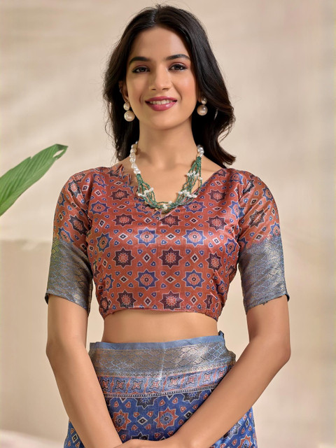 The blouse worn by the model might be for modelling purpose only. Check the image of the blouse piece to understand how the actual blouse piece looks like.