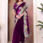 - Floral embroidered saree with embroidered border