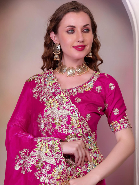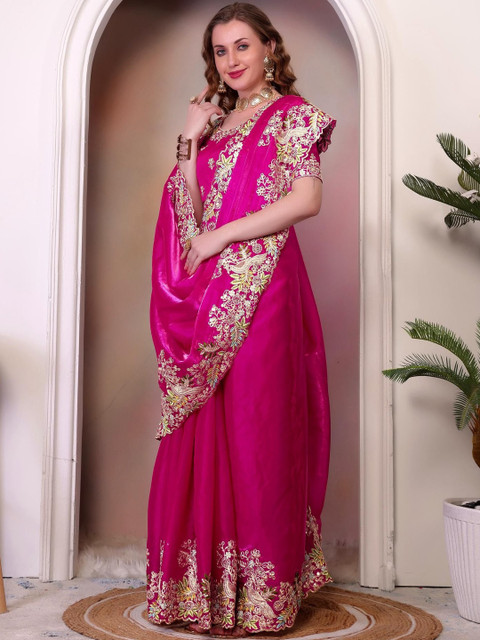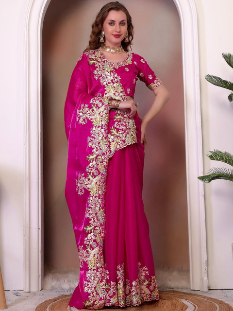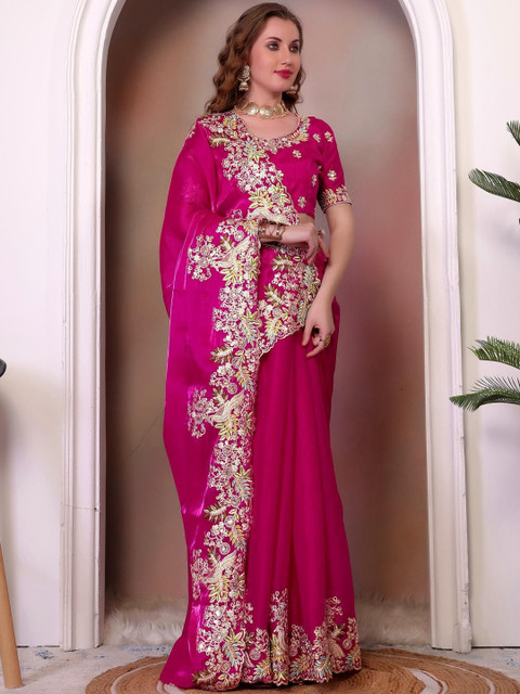 - Fuchsia saree