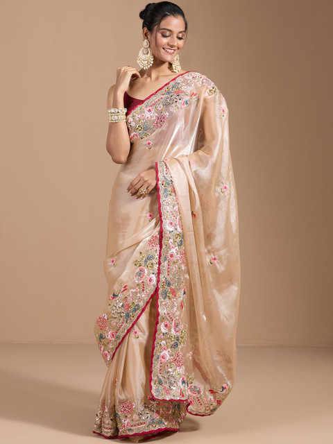 - Floral embroidered saree with embroidered border
