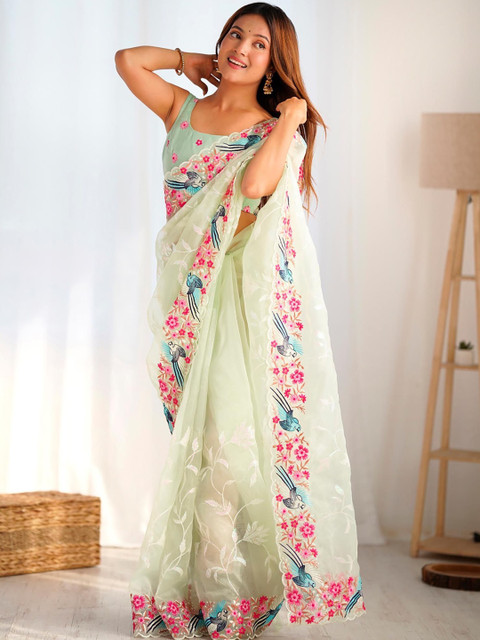 Mameraa Floral Embroidered Saree With Blouse Piece