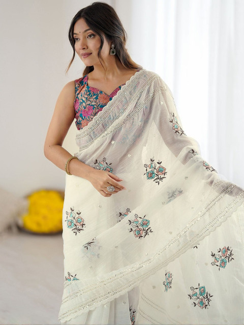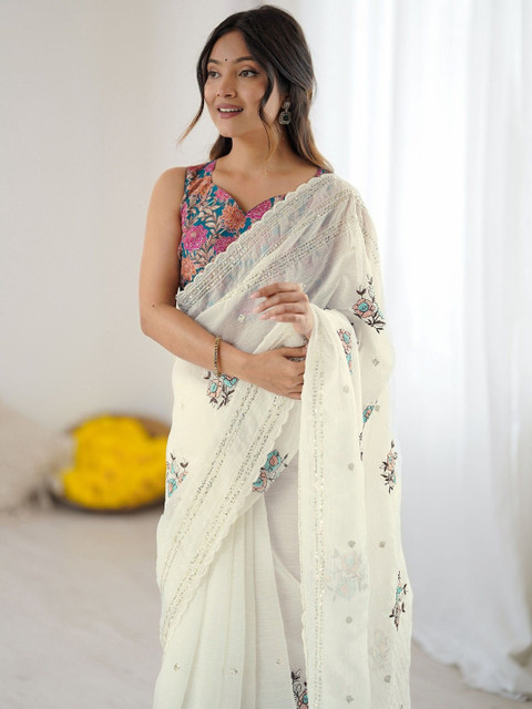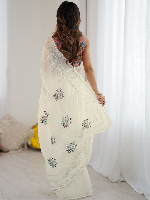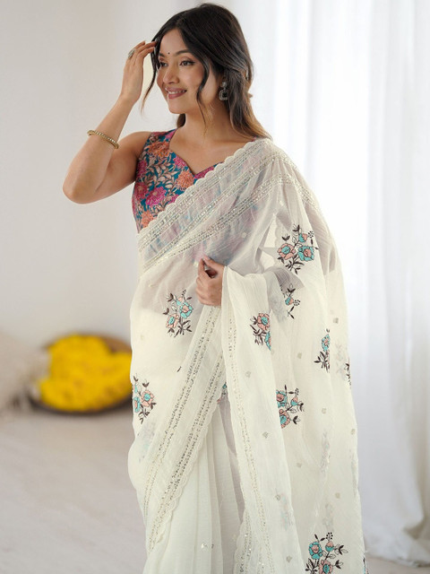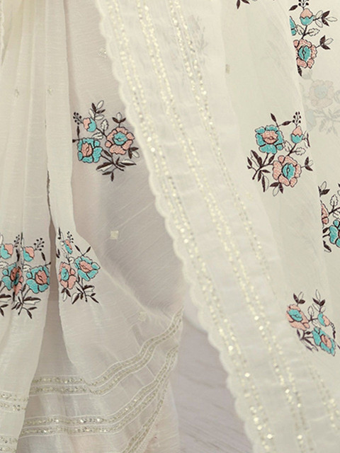 The blouse worn by the model might be for modelling purpose only. Check the image of the blouse piece to understand how the actual blouse piece looks like.
