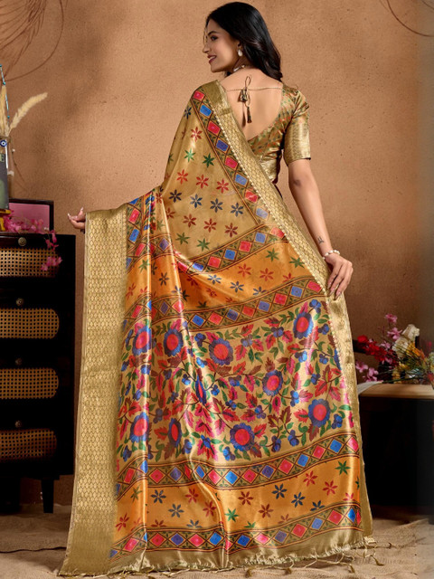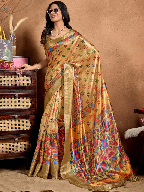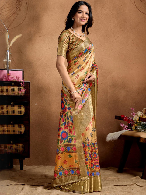 Mameraa Floral Print Zari Saree With Blouse Piece
