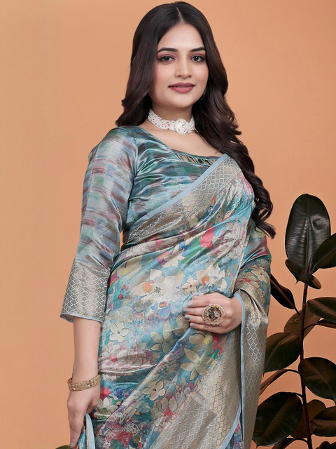 The blouse worn by the model might be for modelling purpose only. Check the image of the blouse piece to understand how the actual blouse piece looks like.
