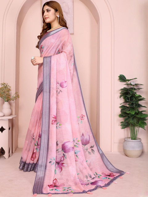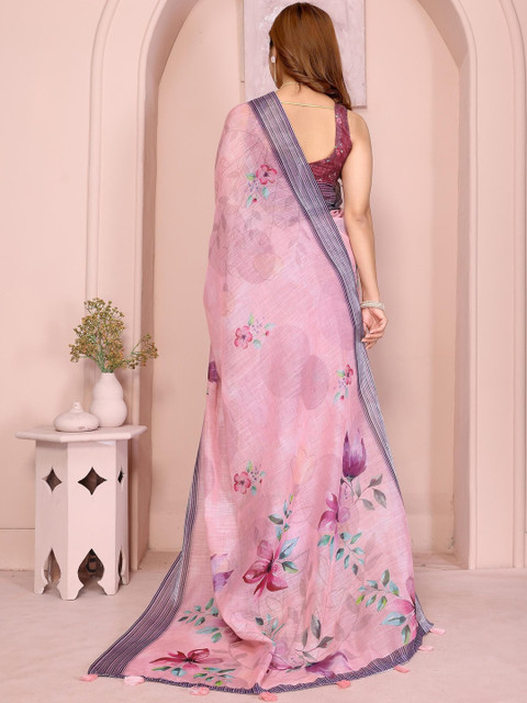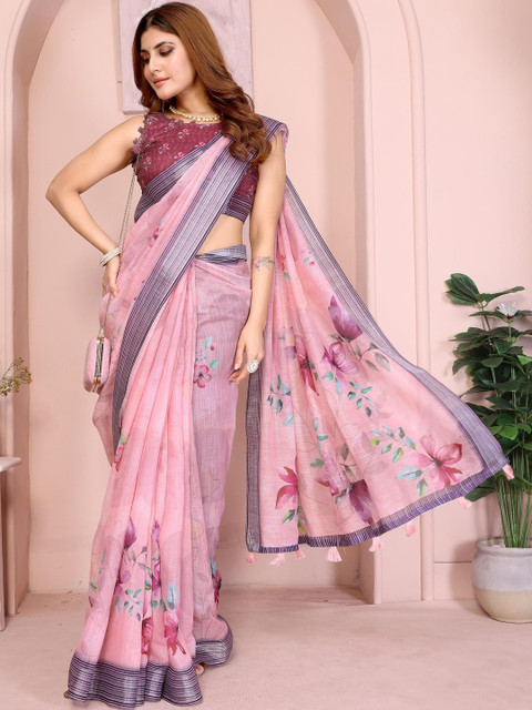 Mameraa Floral Printed Saree With Blouse Piece