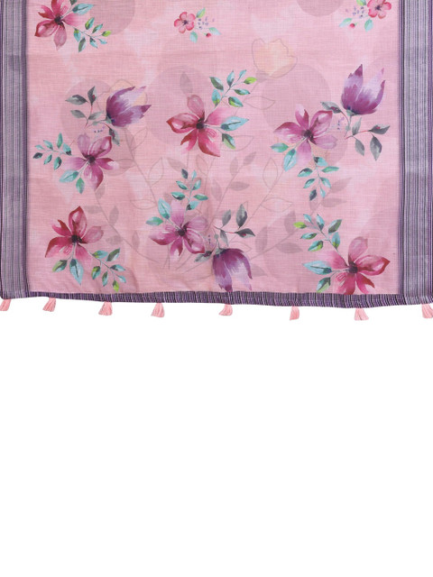 - Floral printed saree with striped border